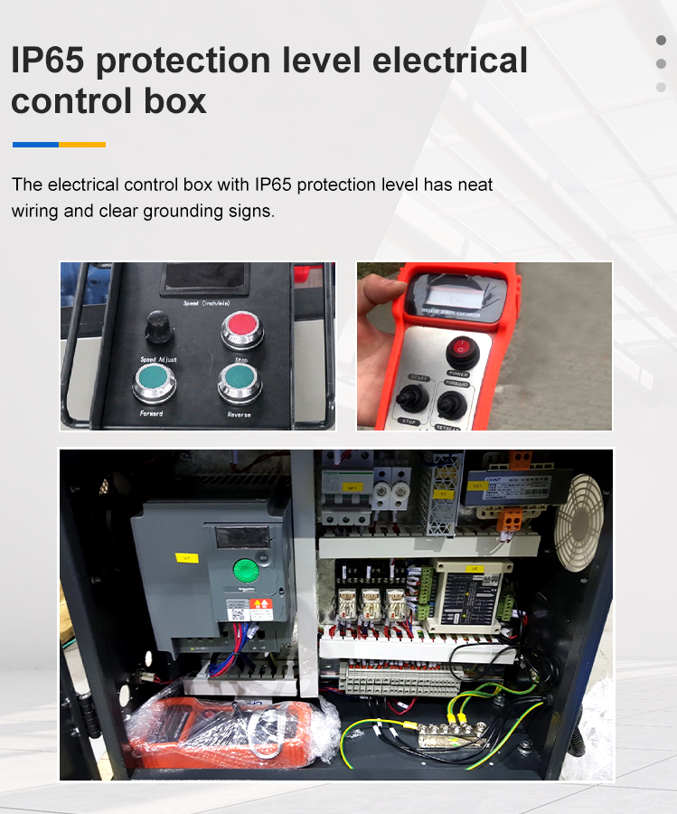 5.The four rollers of the rotator are all powered rollers, adopt double driving system. The driving motor adopts AC motor, driving system has the functions of voltage protection and overload protection.