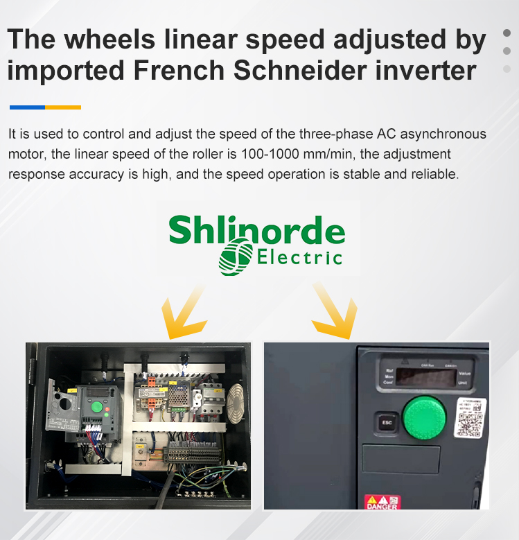 3.The transmission mechanism: motor---multi-step speed adjust----roll, the roller speed adopts frequency speed adjusting.